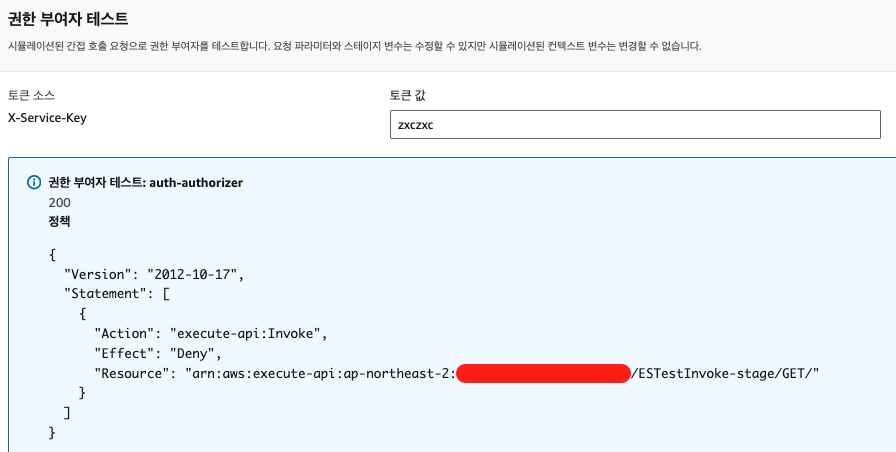 즉, X-Service-Key 헤더에 값이 'tally'와 일치한다면 허용(✅)하고, 나머지는 거부(❌)하는 Authorizer입니다.