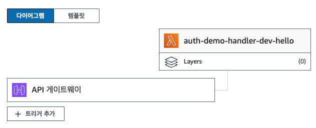 빌드 도구로 프로젝트를 빌드해서 Lambda에 배포(serverless deploy)하고 배포된 Lambda를 권한 부여자로 지정하면 API Gateway에 작성한 Lambda가 권한 부여자로 등록되게 됩니다. 연결할 리소스에 권한 부여자를 적용하게 되면 클라이언트의 요청이 오면 X-Service-Key 헤더의 토큰을 인식해서 그 토큰을 API Gateway Authorizer(auth-demo-handler-dev-hello)가 인증 검사를 하는 절차가 되게 됩니다.