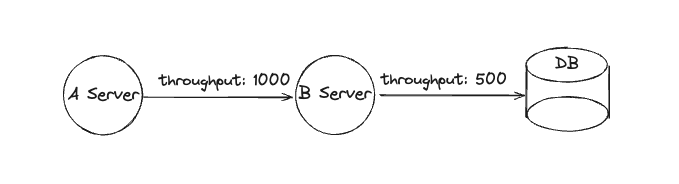 이러한 환경의 서비스일때 아래 이미지처럼 서버간의 통신에서 TPS가 1000이 나오지만 데이터베이스와의 통신이 500이 나오고 있는 상황이라면 실질적으로 해당 API가 초당 처리할 수 있는 양은 500이기 때문에 TPS는 500이게 됩니다.