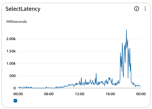 위 지표를 토대로 문제되었던 시간동안의 데이터베이스 메트릭을 비교해본 결과, CPU 사용률(CPU Utilization)과 조회 응답 시간(Select Latency)이 워닝 레벨 수준의 기준치보다 높게 나온 것을 알 수 있었고, 그 외에 나머지 지표들은 하회하는 것을 확인하였습니다.
