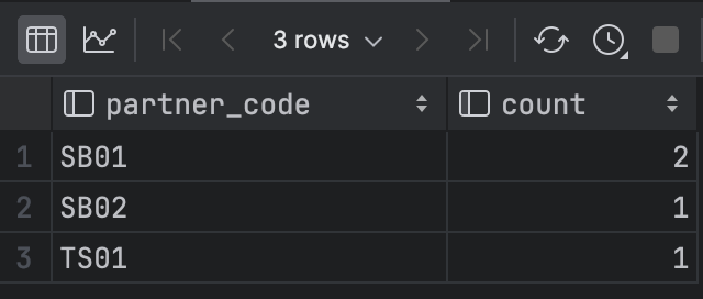 동일한 파트너사에 다양한 가맹점들이 존재할 수 있으며, 각 가맹점은 고유한 키(partner_code)를 가지고 있습니다.